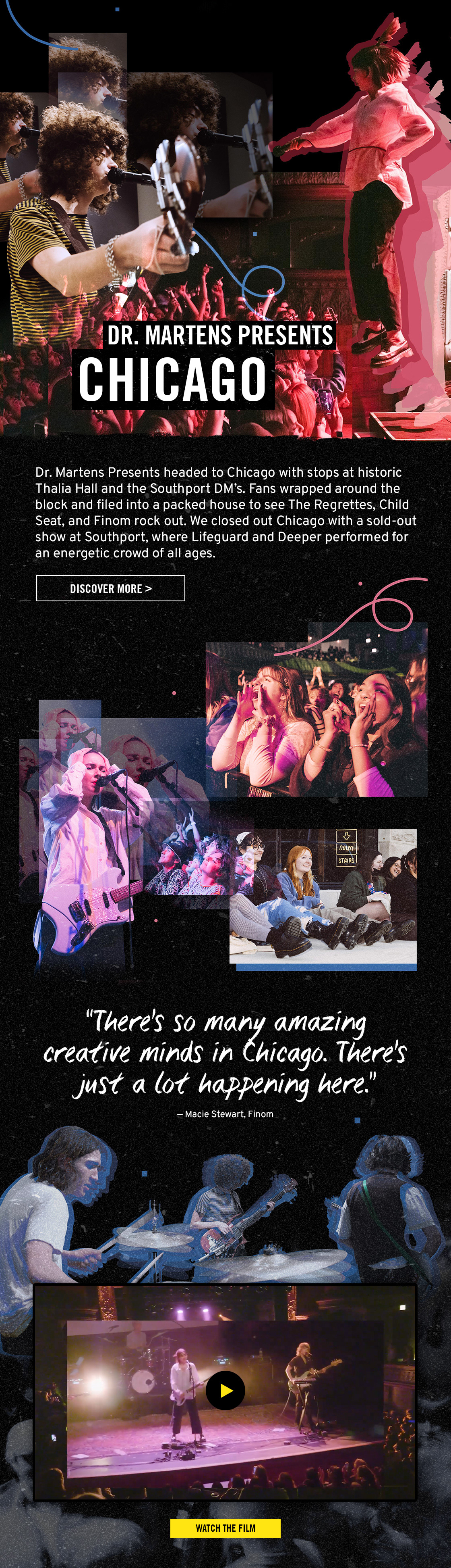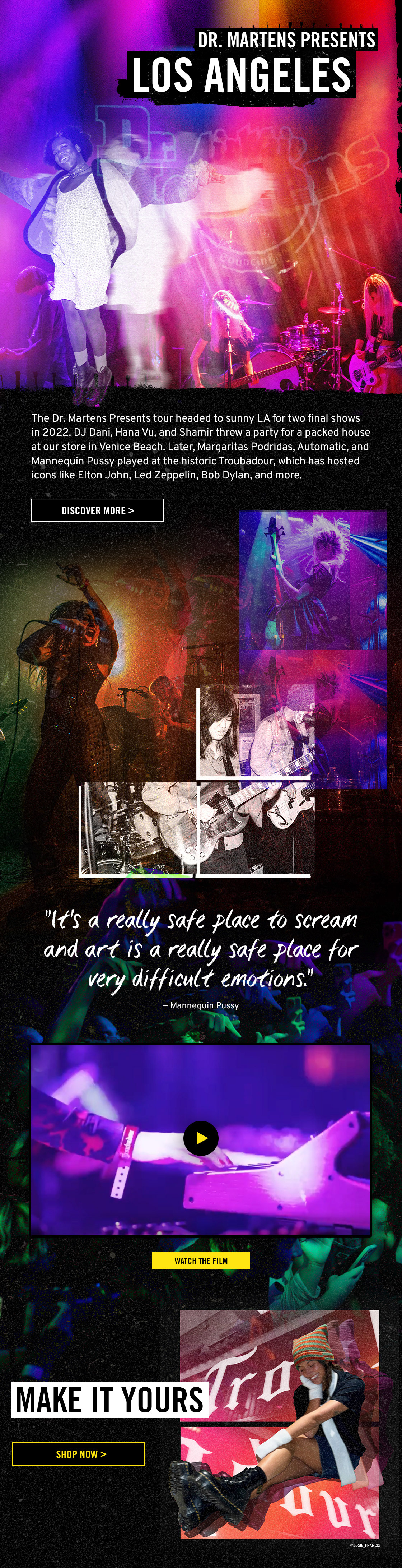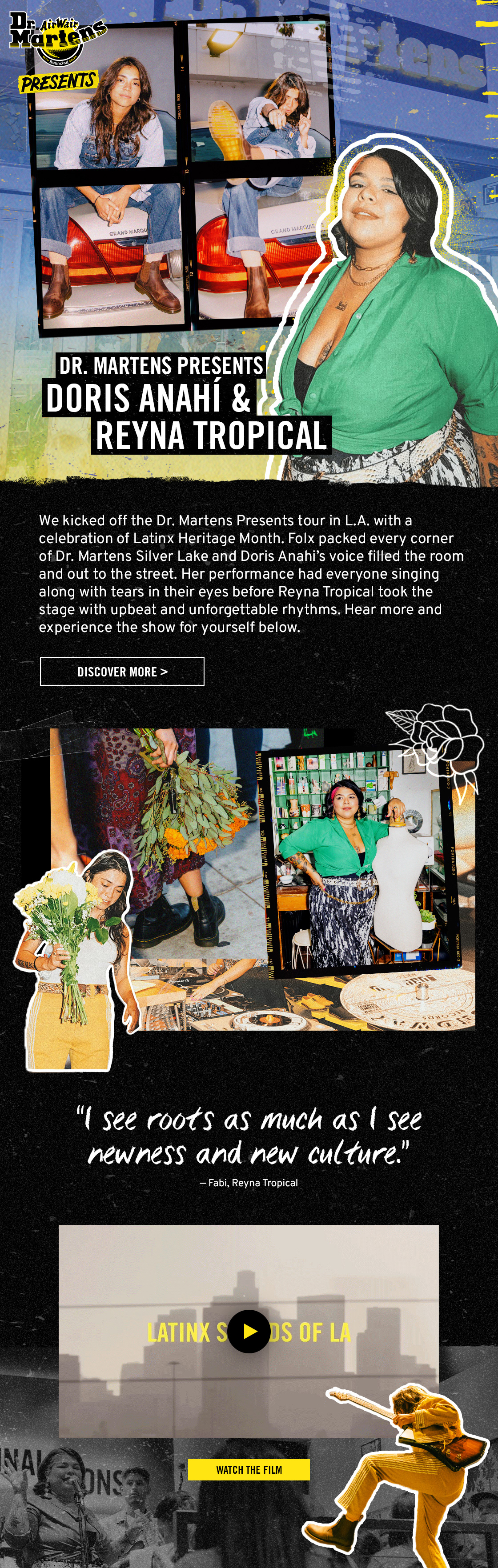 Every part of Dr. Martens marketing lit up around the event, from teasers and RSVPs leading up to it, to live updates during, and recap coverage after. Social, web, email, ads, PR placements, print, and environmental all came together to bring it to life, and I played a central role across it all.