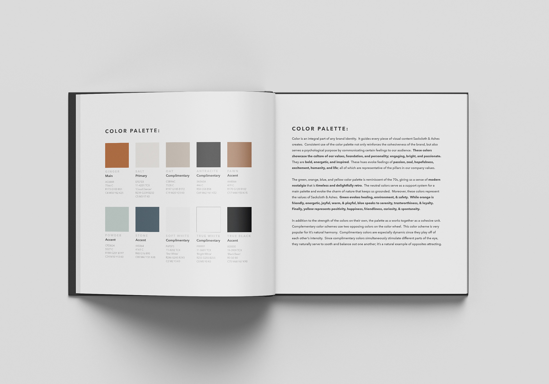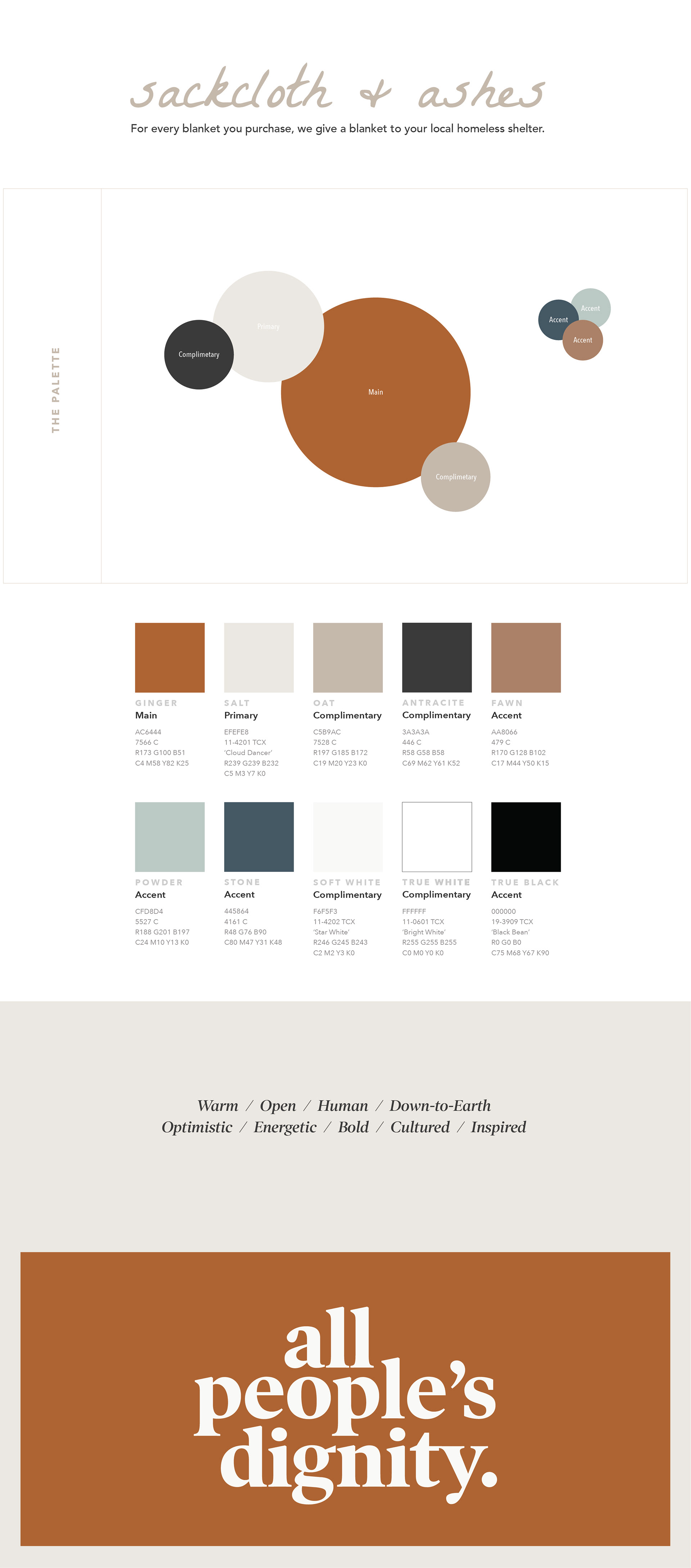 As Sackcloth & Ashes evolved from a DIY startup into a rapidly growing brand, I led the development of a more intentional and cohesive identity system. I helped define the company’s brand strategy, including its mission, vision, messaging, and target audience, and translated those foundations into a visual language that reflects both the warmth and humanity of the brand and the needs of its growing audience. Check out the entirety of the brand guide here.